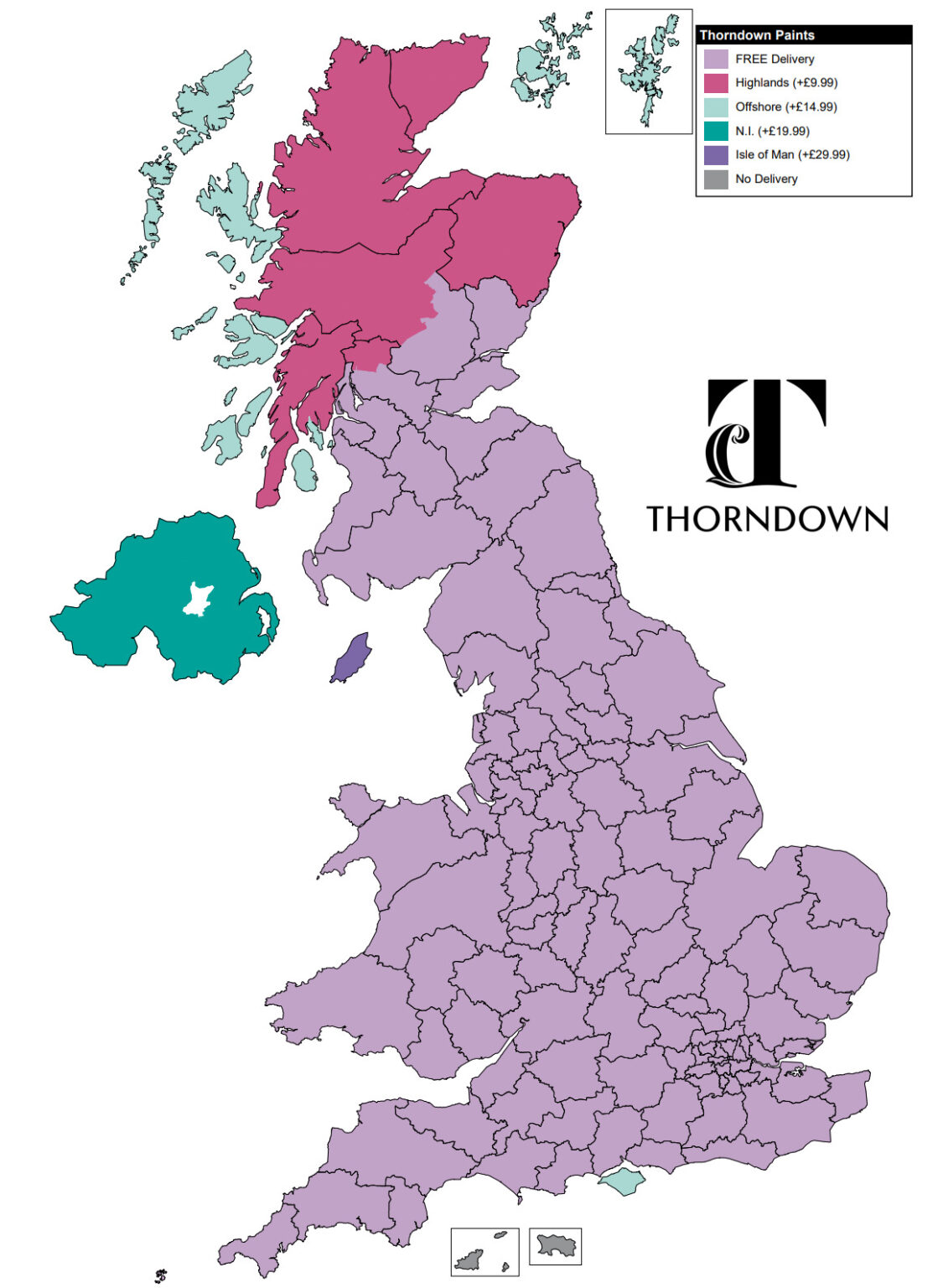 *Thorndown Paints™ are delivered FREE on a next working day delivery (if ordered early enough for us to process and pack), however some remote areas may take a bit longer. Please see more delivery information here.