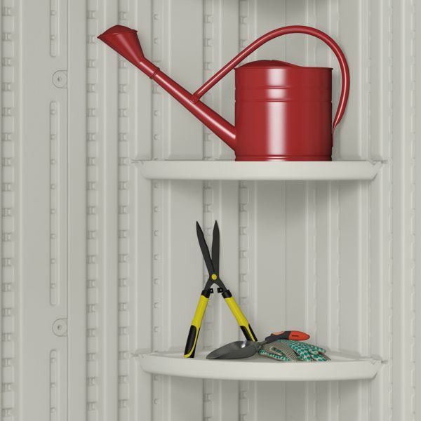 Currently this shed is supplied with 2x FREE corner shelves which can be fitted in a choice of 8 locations inside the shed.
